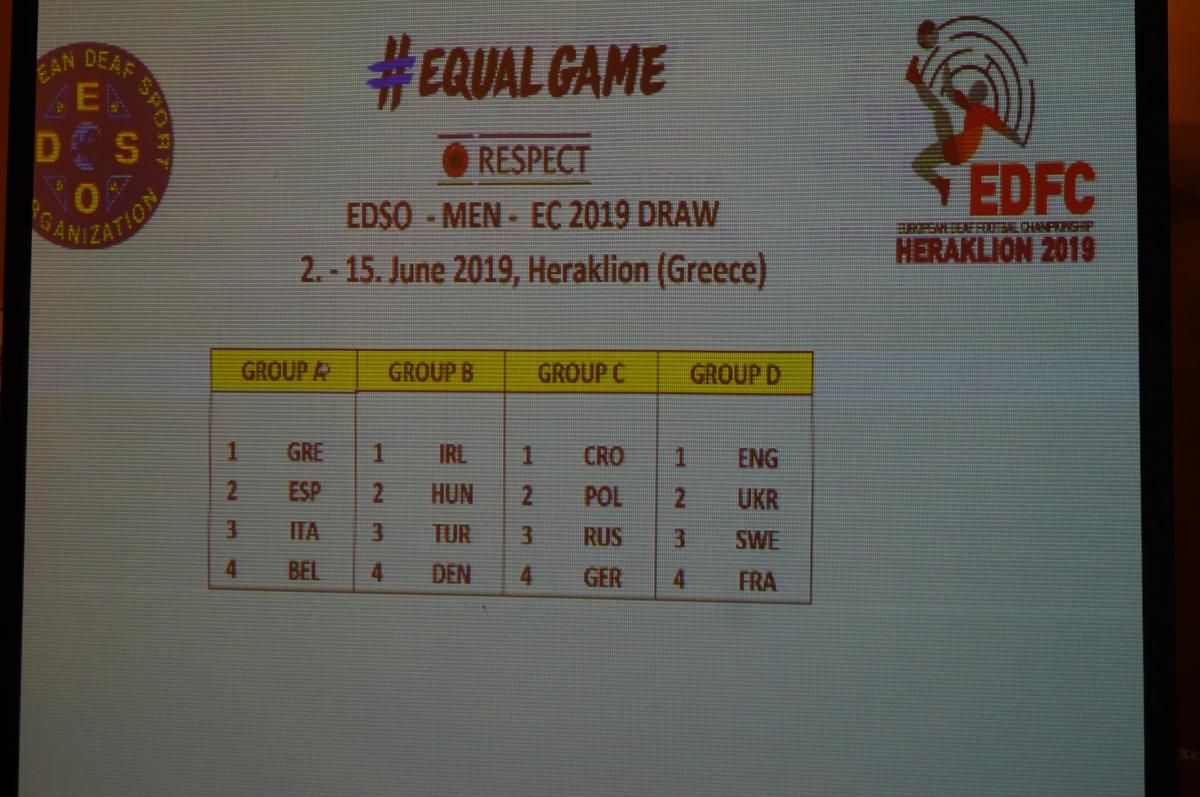 Op 18 en 19 oktober 2018 vond het 19e EDSO-congres, dat gepaard ging met het 35-jarig bestaan van EDSO (European Deaf Sport Organisation). Deze vond plaats in het Griekse Heraklion op het eiland Kreta waar volgend jaar ook het EK voetbal plaatsvindt.