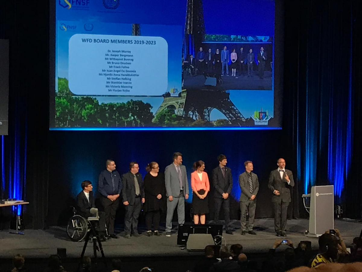 Na 5 dagen vol boeiende lezingen werd het WFD Congres in Parijs zaterdag afgesloten met een sluitingsceremonie. Maar liefst 2.536 personen uit 137 verschillende landen namen deel aan het congres. Tijdens de ceremonie werd het nieuwe WFD bestuur voorgesteld aan het publiek, en de nieuwe voorzitter, Dr Joseph Murray, ondertekende de overeenkomst voor de organisatie van het volgende congres in 2023, dat zal plaatsvinden in Zuid-Korea. Wij kijken er alvast naar uit!