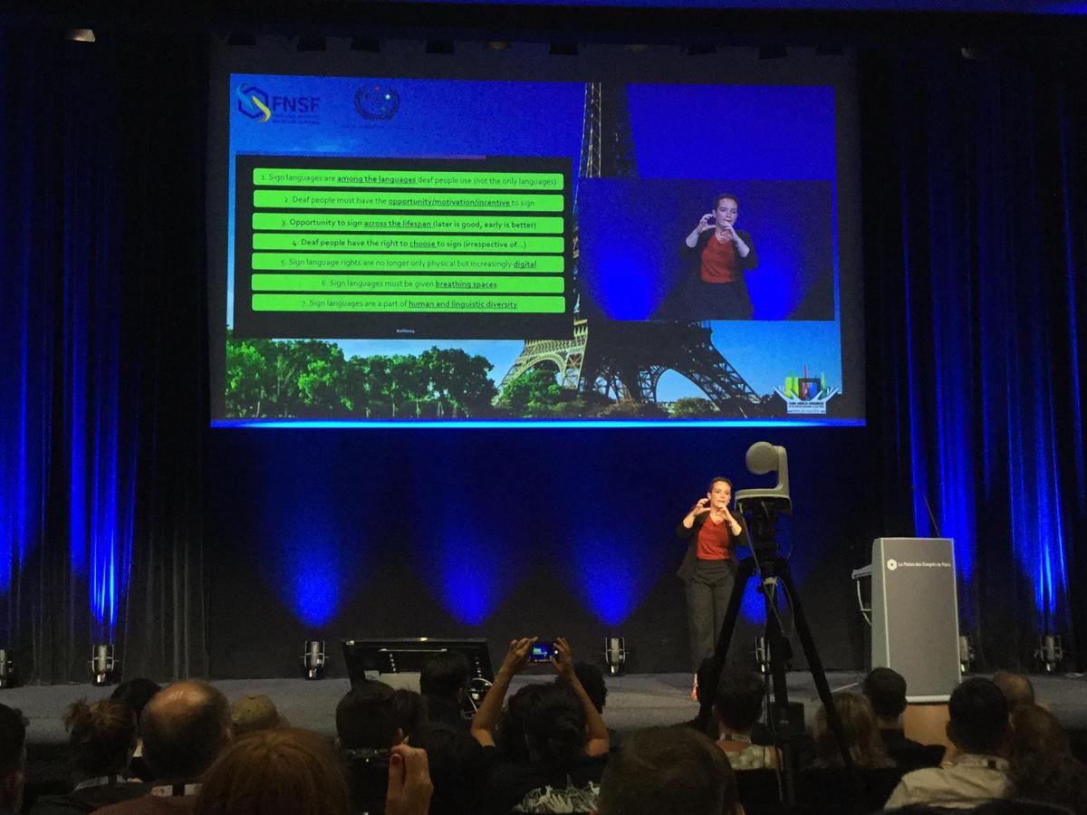 Het WFD congres loopt nog tot 27 juli in Parijs, en heeft als hoofdthema "Sign Language Rights for All". Benieuwd naar het volledig programma van het WFD congres? Deze vindt u hier.