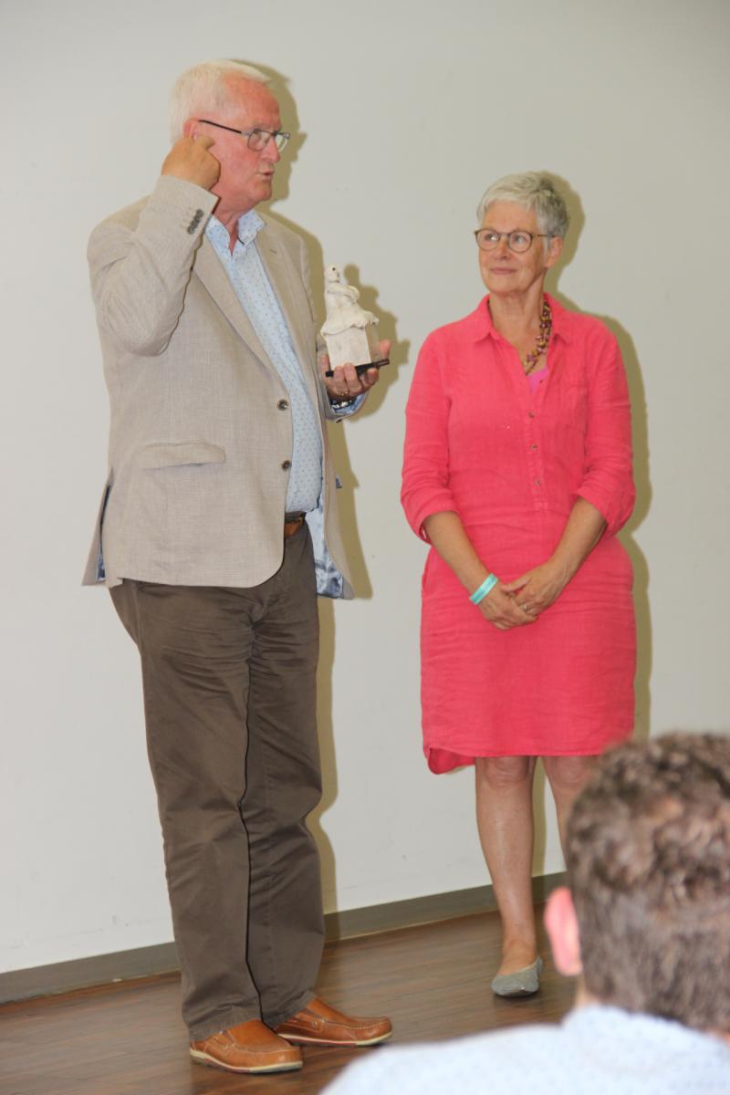 Boudewijn De Roose, die jarenlang voorzitter was van Doof & Senior en dit jaar de fakkel doorgaf, werd in de bloemetjes gezet en officieel benoemd tot erevoorzitter van Doof & Senior.